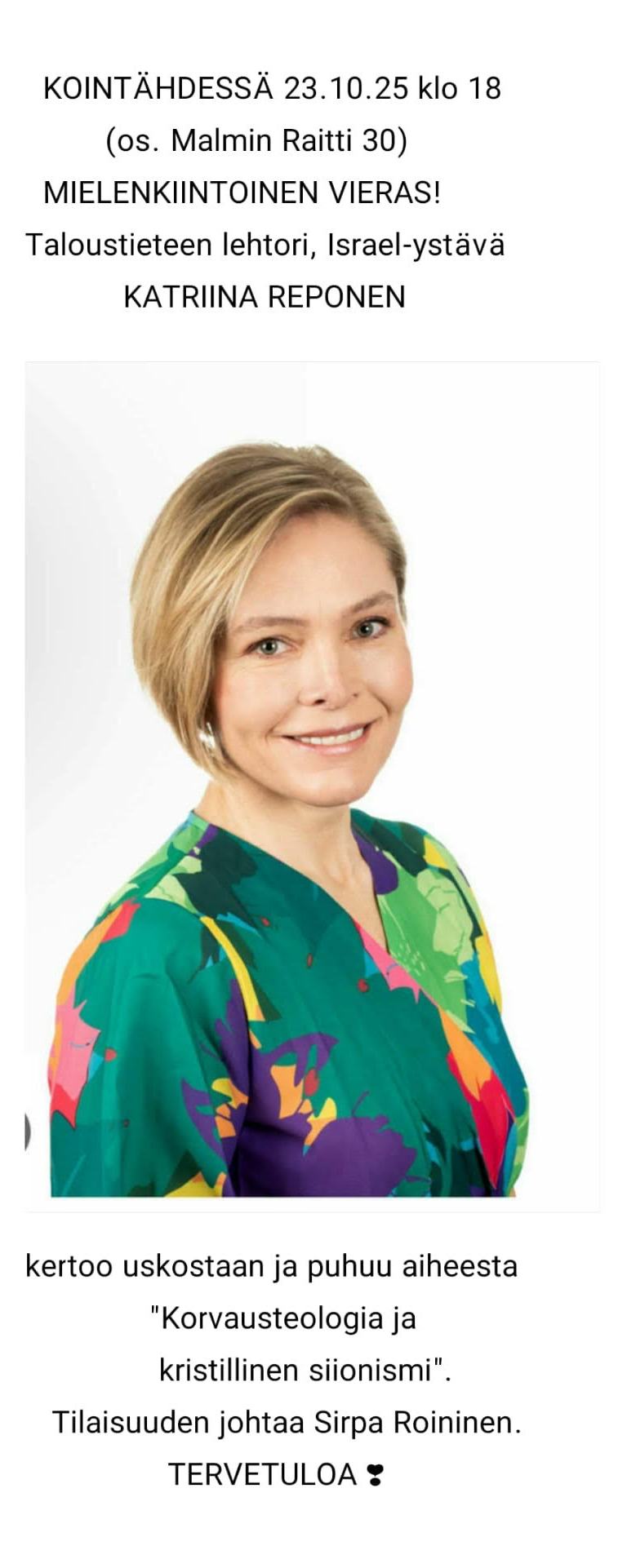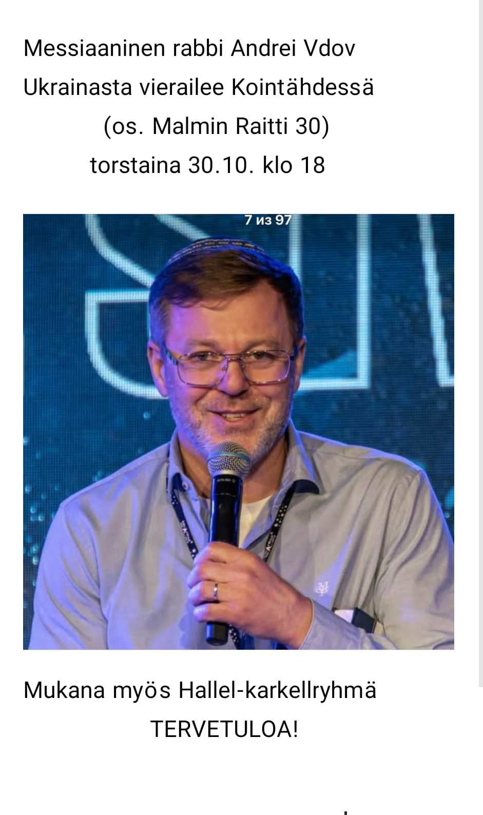 Ajankohtaista UUSIMMAT UUTISET JA TAPAHTUMAT Torstaisin klo. 18:00 rukousilta. KOINTÄHDEN TULEVIA TAPAHTUMIATO 16.10.25 klo 18KOINTÄHDESSÄ Tuomo Väisänen kertoo Krakovanja Israelin matkoista.TERVETULOA Malmin raitti 30, 00700 HKI
